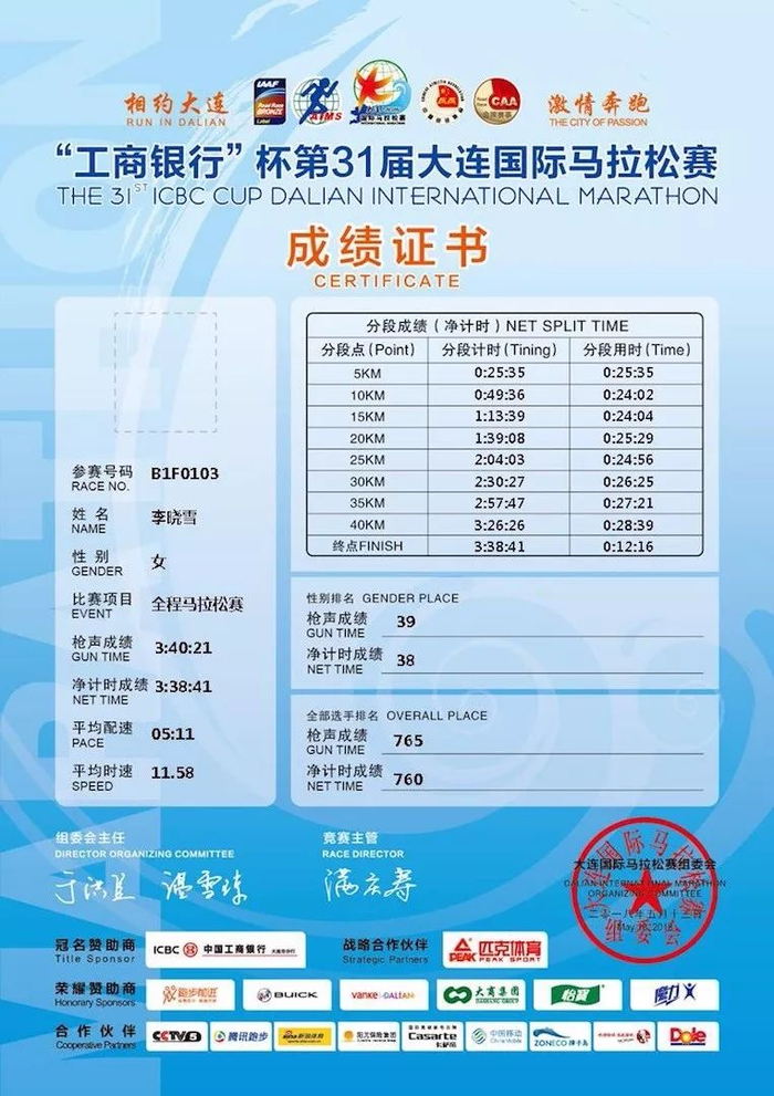 大连马拉松,更是再次PB。