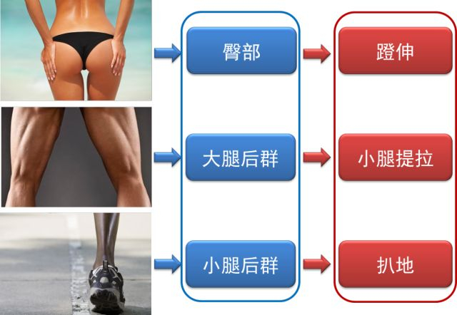 该动作主要训练臀部肌肉和大腿后群肌肉协调发力能力,在跑步过程中,后腿蹬地发力是推动身体前进最主要的动力,仔细分析该动作,后腿蹬地实际上是臀肌发力伸髋和大腿后群肌肉发力折叠小腿的协同用力过程,这个动作就是训练臀肌和大腿后群肌肉协调用力能力。