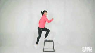 同样需要一侧腿用力蹬伸上台阶,另一侧腿积极上摆,与跑步动作高度一致。这就是苏炳添训练的动作!