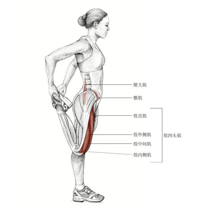 主要肌群:股直肌、股内侧肌、股外侧肌、股中间肌。