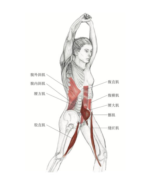 次要肌群:腹内斜肌、腹外斜肌、腰方肌。