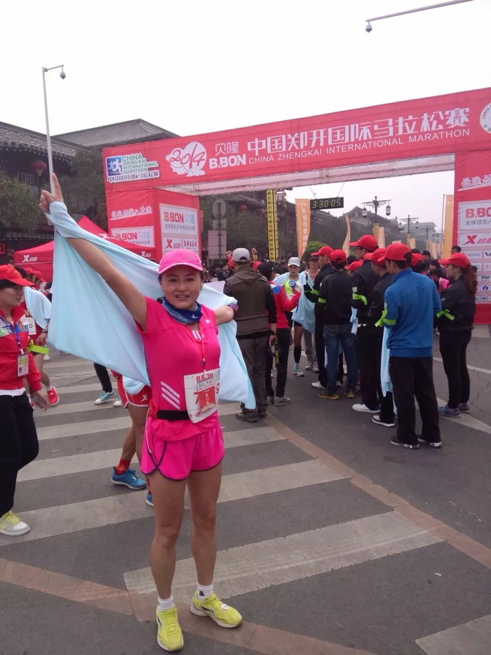 2013年开始跑步,一年时间全马跑进330,半年后达标国家女子一级。今年4月份举行的武汉马拉松上,她跑出了3小时01分的个人最好成绩,目前暂列中国马拉松大满贯大众组女子积分榜第一。