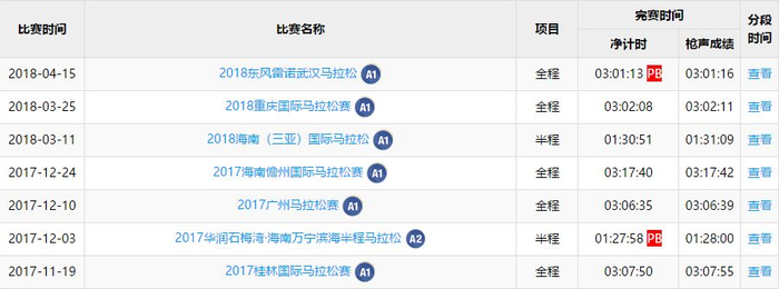 2018年4月15日,武汉马拉松,3小时01分13秒....