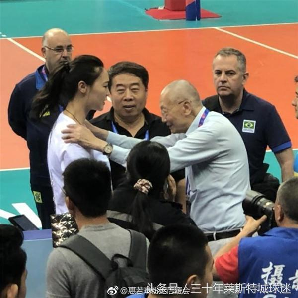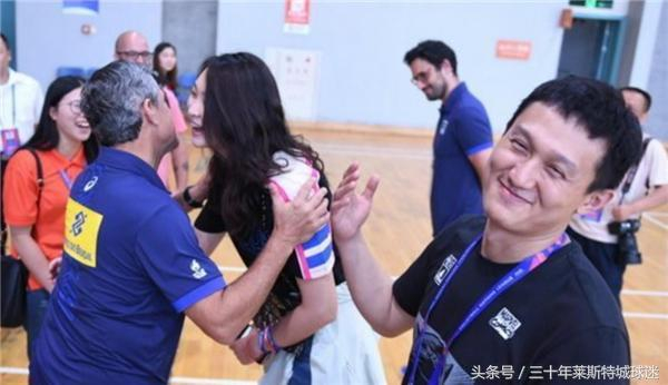 也许是惠若琪实在是太有魅力,无论是国际排联荣誉主席魏纪中老爷子还是吉马良斯,见到女排前队长都很高兴。这次,巴西主帅也用双手扶着惠若琪肩膀,并且用西方人特有的贴面礼向小惠表示问候。
