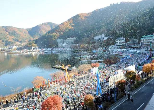 2018富士山马拉松比赛日期为11月25日,这是河口湖每年最好的赏枫时节,群山如画,红枫如火。