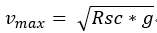 这个是在一定条件下的平坡上,转弯半径直接和侧切半径和速度有关,和立刃角度无关的等式,这将会得出非常有趣的结果,因为从等式可以得到一定侧切半径的雪板在平坡上的理论极限速度,即: