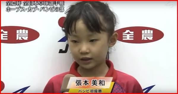张本美和生于2008年6月16日,年初以全部3-0的战绩获得了全日本锦标赛小学生组女子单打冠军,入选日本U12国家队,并在几个月后的国家队大循环中以10站全胜的成绩名列榜首,获得了包括东亚希望杯在内的多项国际比赛参赛资格。