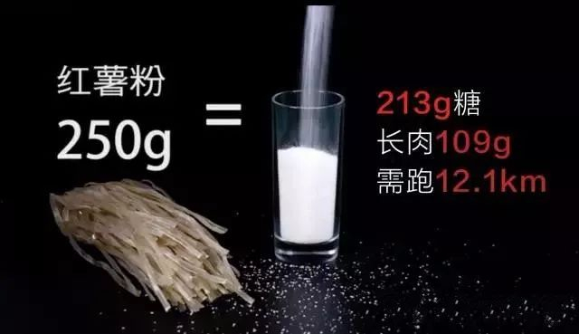 这个高含糖食物列出来,很多人会一脸懵逼,觉得这算是主食,也会有那么多的糖吗?没吓唬你,红薯粉制作过程中是没有添加蔗糖,但去掉了粗,只剩了细,所以请不要把红薯粉作为粗粮减肥时食用,吃红薯就好了哈。