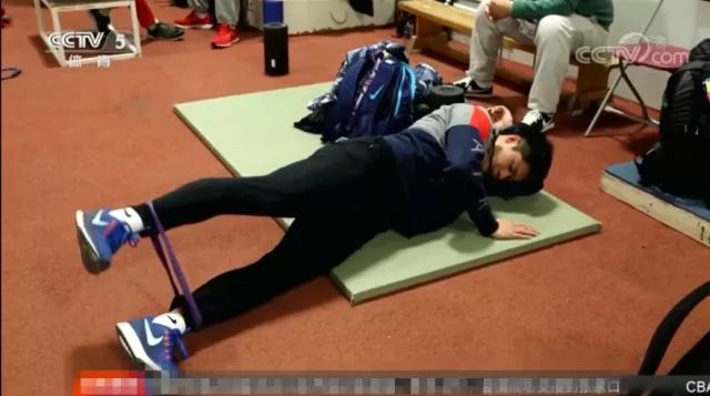 其次,苏炳添采用了侧卧位的一个热身动作,他在脚踝上绑上一个弹力环,然后做侧卧位外展动作,该动作训练目的是什么?跑者知道吗?该动作主要用来激活臀中肌——一块位于臀部外侧的小肌肉,臀中肌激活已经成为一个流行的热身动作,目前认为热身时激活小肌肉对于发挥其保护关节的作用,预防运动损伤,提高动作稳定性特别重要。