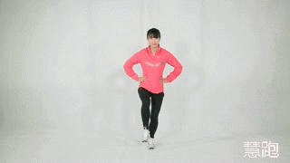 2、前后垫步高抬腿:这是一个结合跑姿的热身动作。