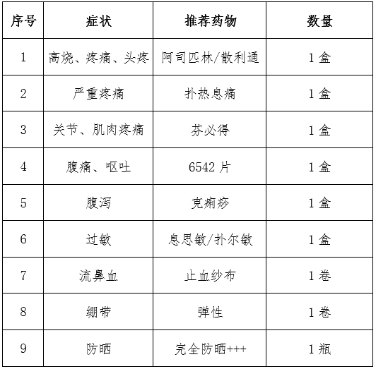 (三)急救包内物品清单