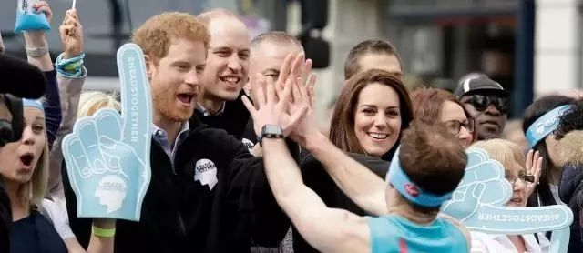英国王子也热衷于马拉松慈善活动,看!为了跟王子王妃握手,选手们都没办法好好跑步了。