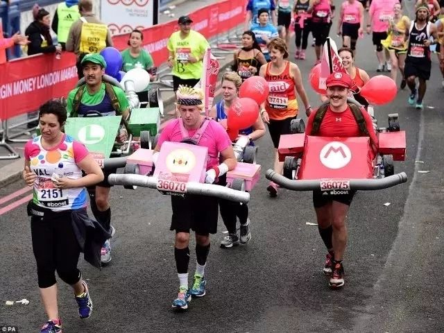 2007年,伦敦马拉松组委会为了丰富选手的参赛体验和募集更多善款,与吉尼斯世界纪录一起推出了cosplay大赛,每年都会创造很多cosplay跑的世界纪录。