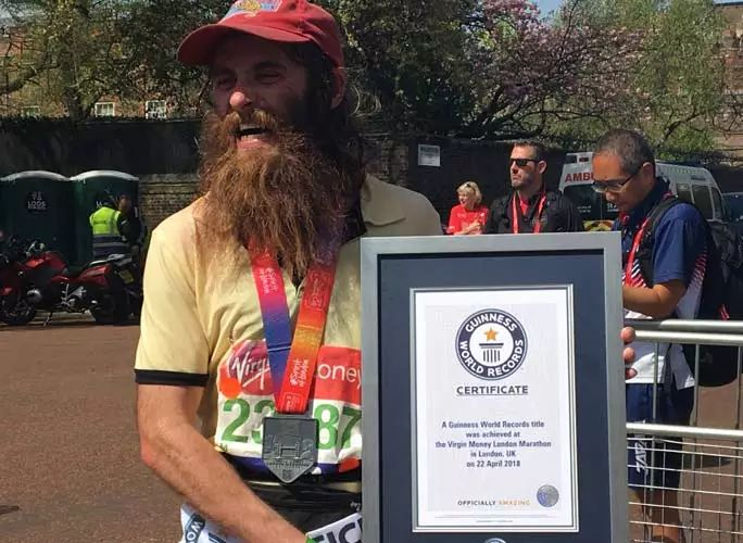 2018年,cos阿甘的跑者Rob Pope以2:36:28打破了最快的电影角色服装马拉松世界纪录,他已经筹集了3万英镑的善款。