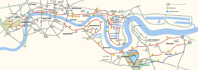 伦敦马拉松从位于伦敦西南的格林威治公园出发,经过国会大厦和白金汉宫,抵达靠近圣琼斯公园的终点,沿途可以欣赏到伦敦许多著名的历史名胜。