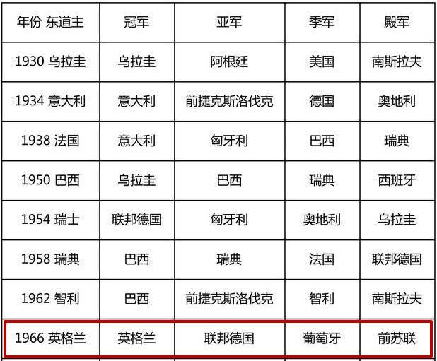 1958年、1962年、1966年、1970年、1982年、1986年和1990年世界杯决赛圈,30多年间只缺席过两次世界杯,并在1966年的世界杯获得历史最好成绩第四名。