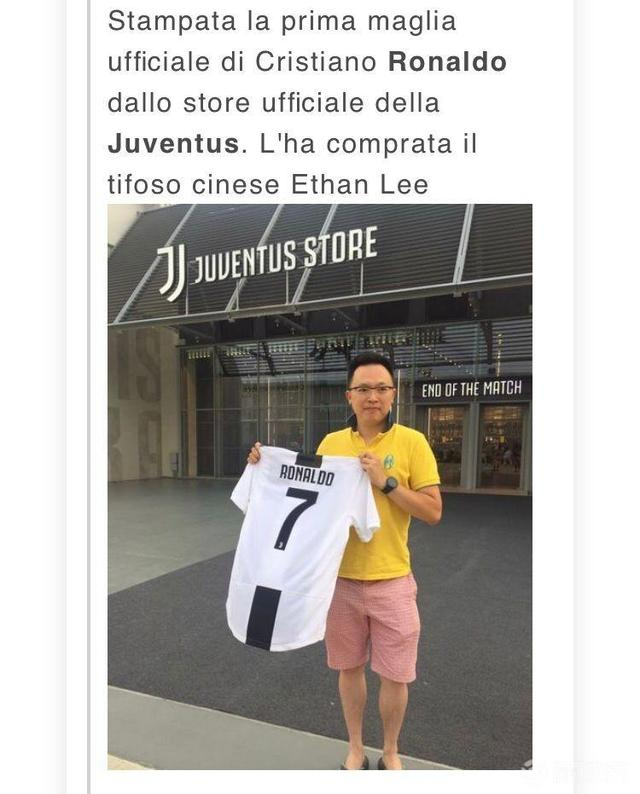 中国球迷抢到第1件C罗新球衣!尤文图斯7号战袍大约1128元人民币