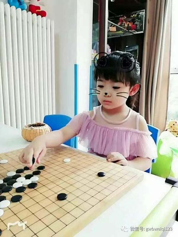 下围棋的小公主最漂亮!看,我们的小公主吃了对方好多子,真棒,宝贝!