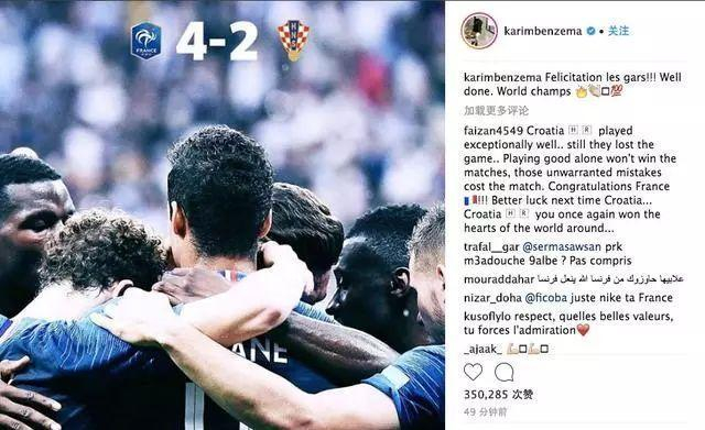 而对于本泽马,这个让球迷拿来当段子调侃的对象,其实也比较无辜。从2016年欧洲杯到2018年世界杯,本泽马都没有机会随队参加。可是看看“接替者”吉鲁,似乎发挥也不好,这次世界杯吉鲁更是颗粒无收,有球迷调侃:也许带上本泽马,法国夺冠能够更轻松。而本泽马在看到祖国第一时间夺冠后,也是送上了自己的祝福,亲自发了贺电!