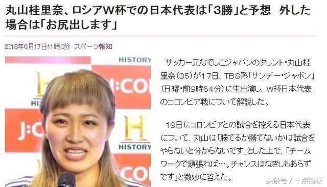 日本男足在世界杯前其实不被很多人看好的,而这其中还有个十分有趣的事件:日本女足第一美女国脚丸山桂里奈,她在世界杯前预测日本队会在小组赛中三战全胜,而假若自己预测错了,那么惩罚便是:露屁股!