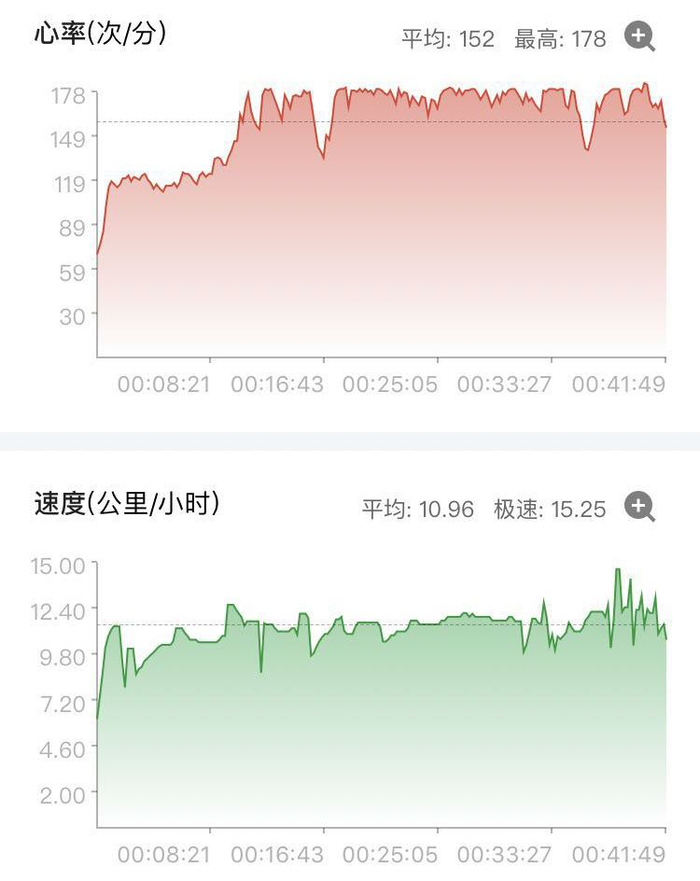 心率准确性这恐怕是华米2最大的缺点,不够准确。本次测试使用佳明心率带作为对照组,跑步8公里,全程配速基本在5分20秒左右。