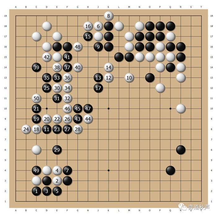 黑47冲下形成转换,从全局看,双方仍旗鼓相当。