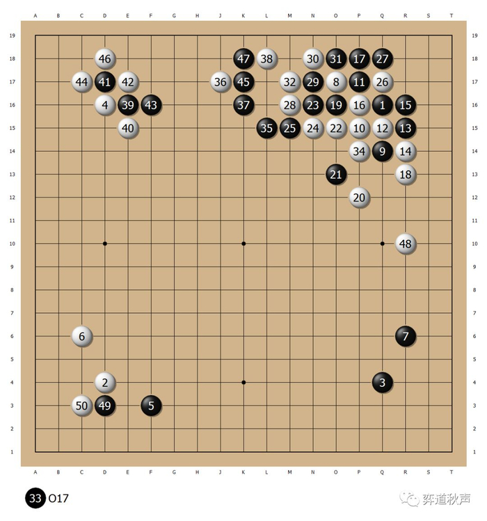井山无奈选择弃子,黑33断手筋,不过卖掉了上方的味道,也很可惜。