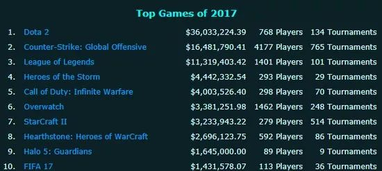 守望先锋2017电竞赛事总奖金仅排第六