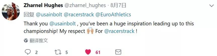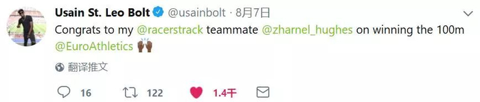 就在这次问鼎欧锦赛后,博尔特第一时间在个人社交媒体上表达了祝贺——