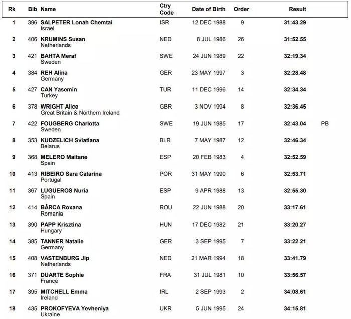 女子10000米决赛,以色列的萨尔皮特夺冠!