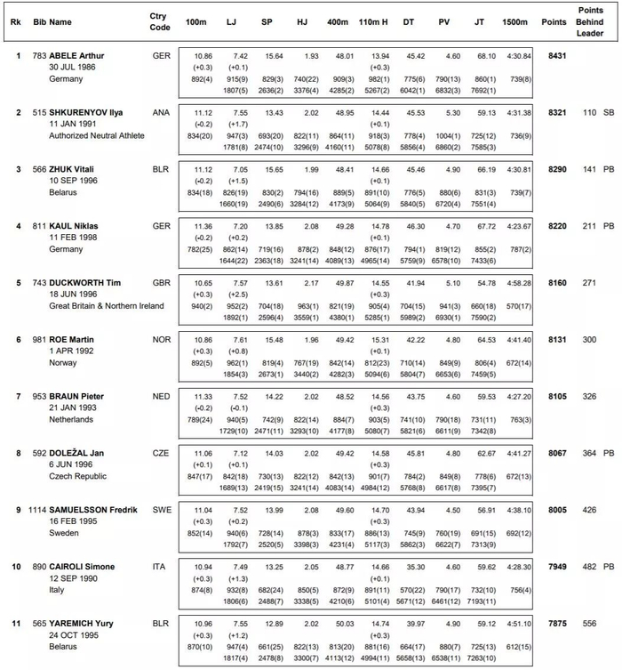 男子十项全能,德国本土选手阿贝勒摘金。在1500米冲过终点线后,当得知自己收获金牌,他潸然泪下!