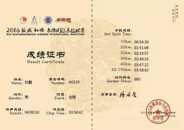 2016年五一,每个月月跑量达200公里的杜鹏,跑了自己的第一个全马。当时他由于补给不到位,所以后半程抽筋了,“但好在平时跑量比较大,又经常参加半马,所以还是跑了下来。”4小时31分,他完成了自己的首马。