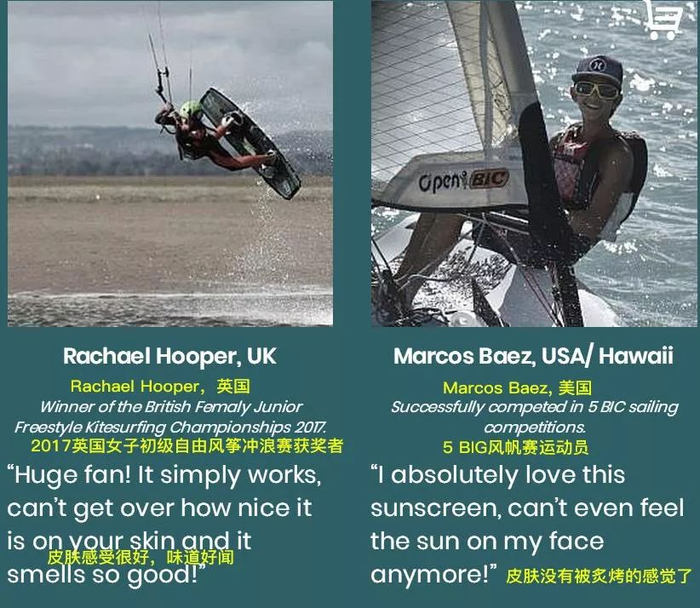 而且这些海上运动员,他们对防晒霜所含的化学物质极为挑剔,绝不允许自己所使用的护肤产品对海洋造成任何伤害,Suntribe防晒霜纯天然成分,完全打消了他们的顾虑,受到了各国运动员的喜爱!