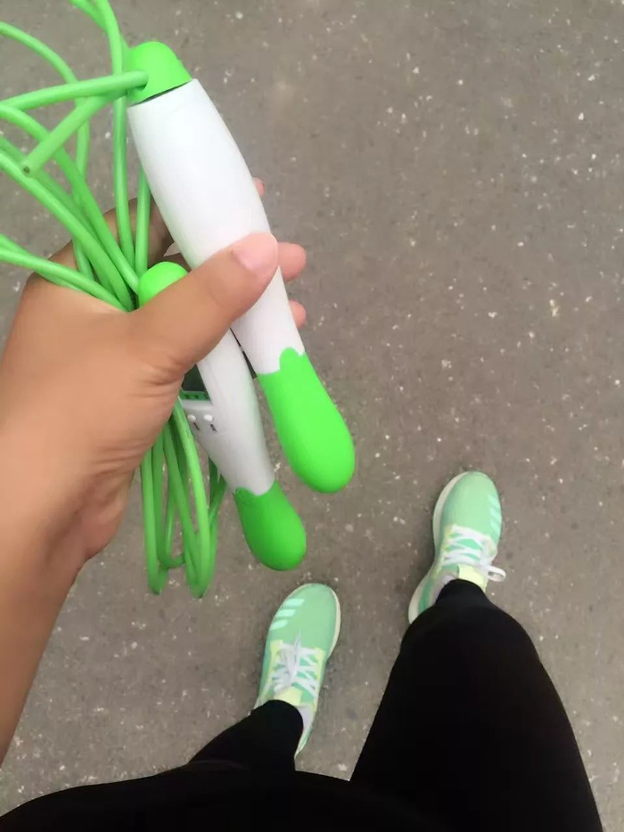 但这个时候,新的问题又来了,减肥到达平台期了,“怎么跑步怎么节食都下不去。”正好赶上了出差,刘扬便开始了跳绳。每天晚上,她都会跳1500个左右,“出差了3个月,每天都跳,每天都累到半死才罢休。”