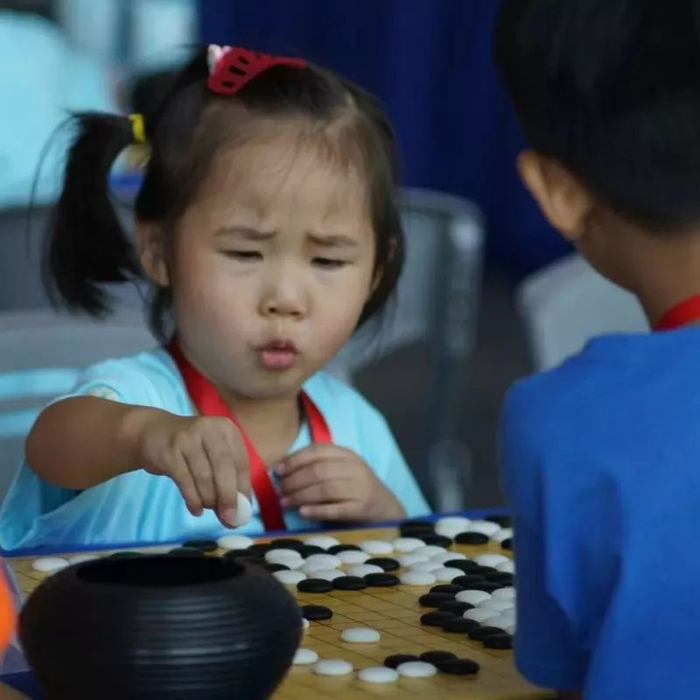 照片中的小棋手年岁不大,可她盯着对手的眼神,就算是词汇丰富无比的文学大师,一时半会间恐怕也很难用简单的字词准确形容出来。