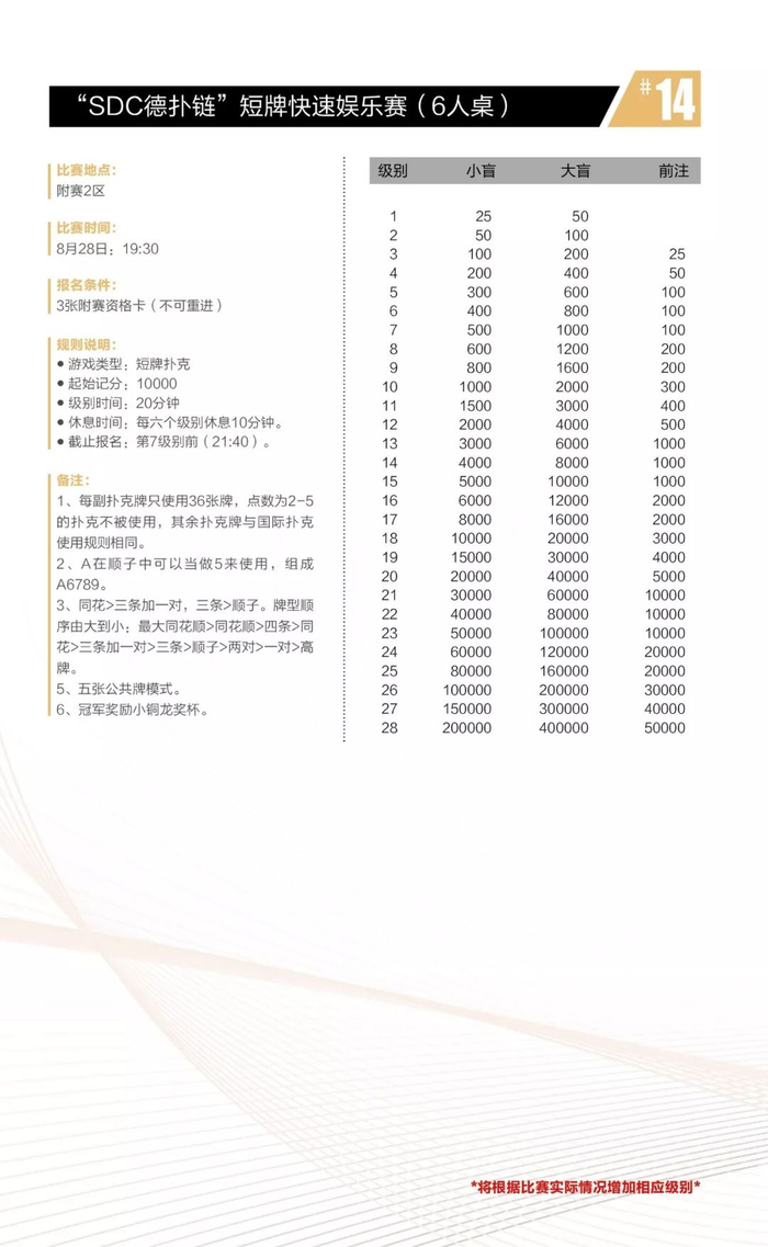 短牌类比赛是首次引入到CPG赛事中,短牌比赛规则如下: