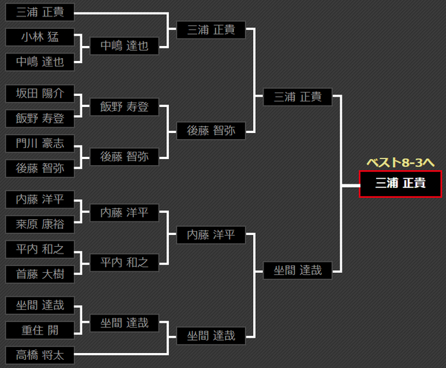 第3区的8强入场券被三浦 正贵夺得