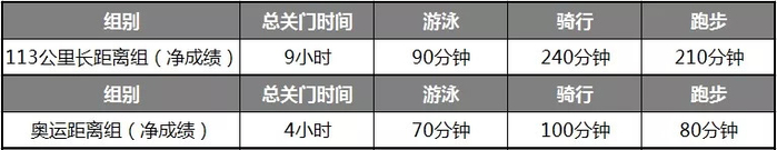 备注:全程超过以上时间,不算完赛。