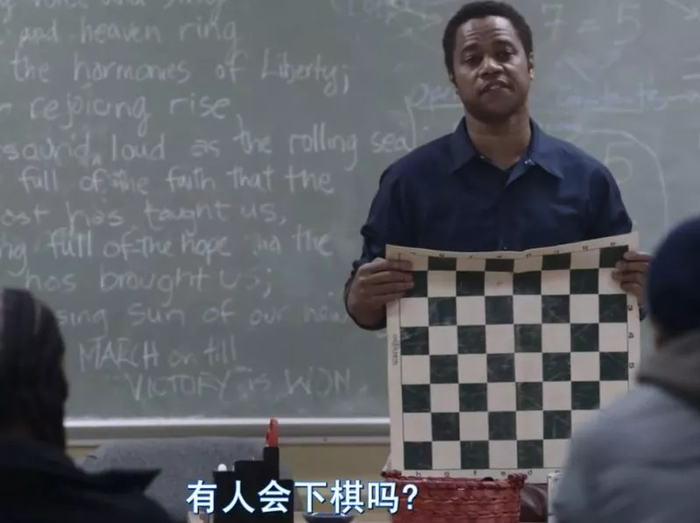 在教育这帮不肯循规蹈矩,叛逆寻衅的学生时,尤金的话更加意味深长。比起直接告诉他们各种大道理,尤金则巧妙地借棋子来“说”出这些道理。