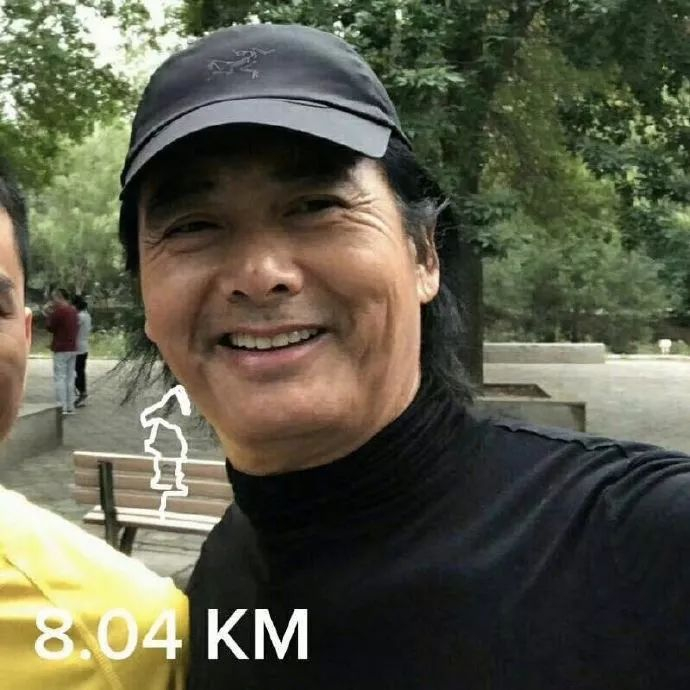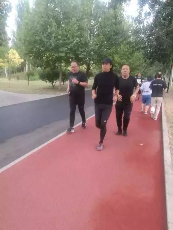 发哥一身黑衣黑裤,头戴始祖鸟的帽子,和友人一起晨跑。不少偶遇的跑友都想和发哥合影,发哥一点也没有拒绝的意思。