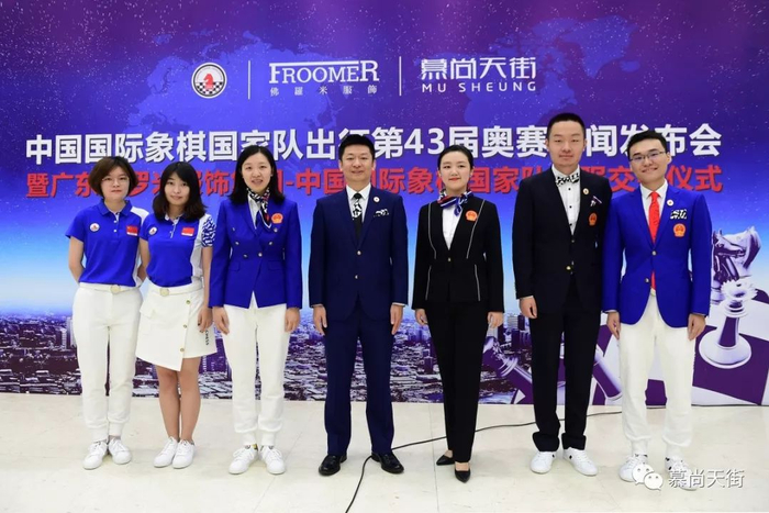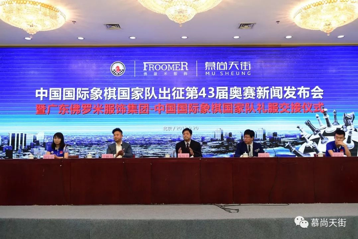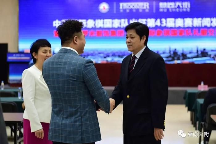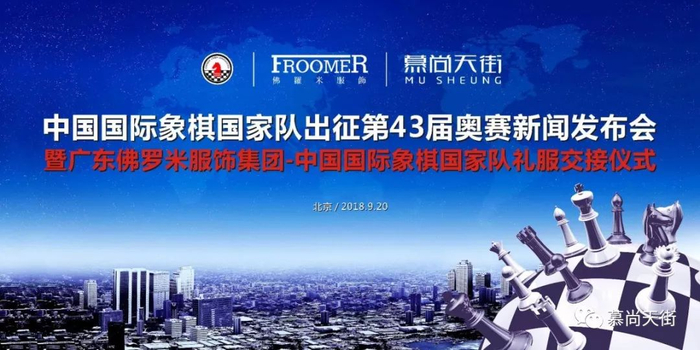 9月20日上午,中国国际象棋国家队出征第43届奥赛新闻发布会暨广东佛罗米服饰集团-中国国际象棋国家队礼服交接仪式在中国棋院二层大厅举行。