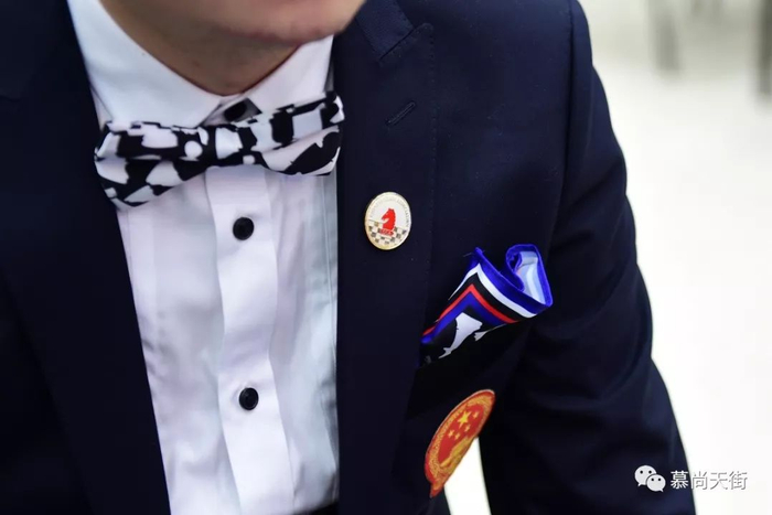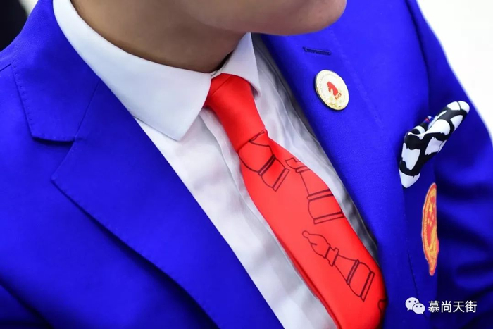 领带、丝巾、徽章的搭配,鲜艳夺目、耳目一新,向世界展示中国新时代精神美的艺术感受。