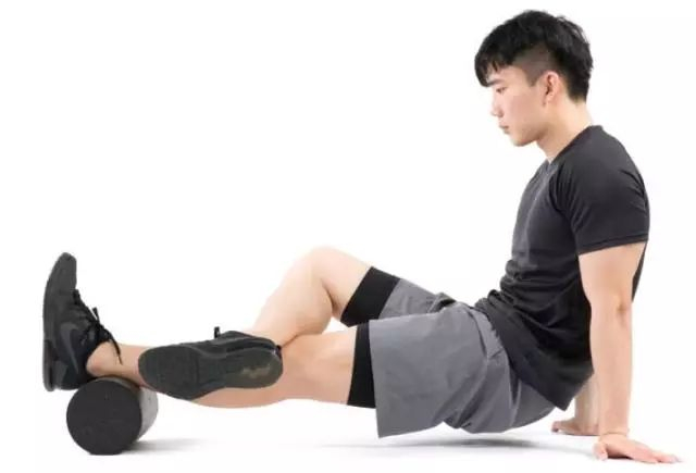 ②前后滚动泡沫轴,在膝盖到脚踝之间滚动。