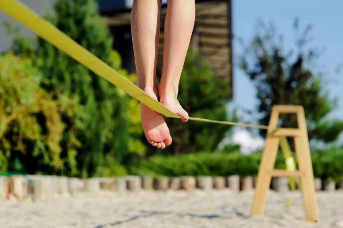 这项运动的线索就在它的名字里——在一条稍松弛的带子上保持平衡(并非“走钢丝”)。这条带子由聚酯制成,通常宽约5厘米,长约15米。把扁带固定在离地面不超过50厘米的两棵树或两根柱子之间,然后就可以开走了——也许还要做好被公园里所有游人围观起哄的心理准备。