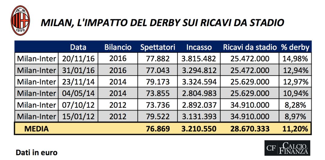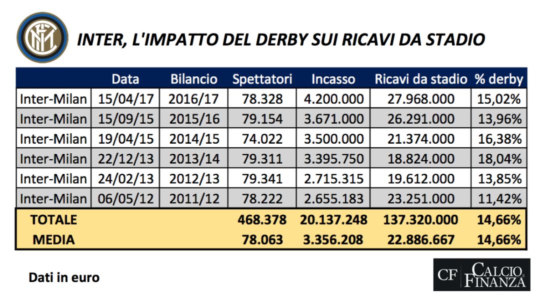 国米视角:米兰德比经济收益和所占比例