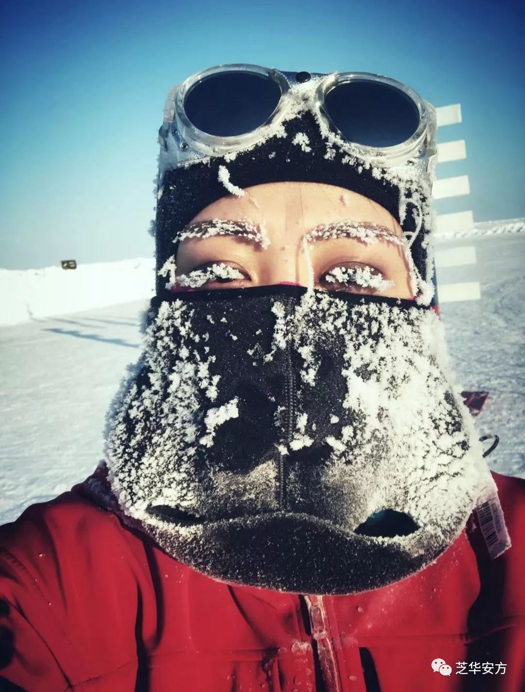 “我人生中的第一次露营,是在北冰洋中央的一块浮冰上。营地只能在每年三月底极昼开始,四月底夏天来临之前维持三个星期左右。零下三十五度,脚下是一万英尺的北冰洋,四点二公里一圈的赛道,需要重复跑十圈,每一圈都是对意志的极度考验。在地球最北端的洪荒之地跑步,冰面上是很厚的积雪,一脚踏下去,往往会没过小腿,有时积雪又很浅仅仅没过鞋底,每一步都充满未知,深一脚浅一脚,让人心力交瘁,真心体会到了每一步的极度艰难,四十二公里的距离变成了遥不可及的绝望。三百六十度视野看不到任何生物,零下三十五度的气温,呼吸让雪镜瞬间积雾成冰,只能摘下来,但睫毛也很快结冰,变得越来越沉重,只能半睁着眼睛跑。”毛莎谈及当时的经历时称真的是毕生难忘。
