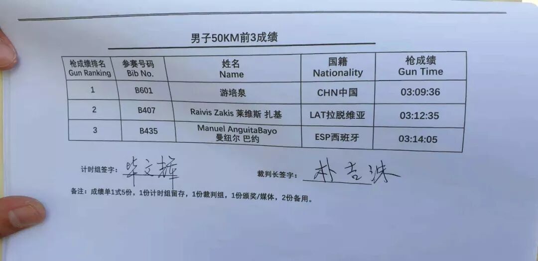 此外,在50公里比赛中,中国选手游培泉以3小时09分36秒,摘得冠军。