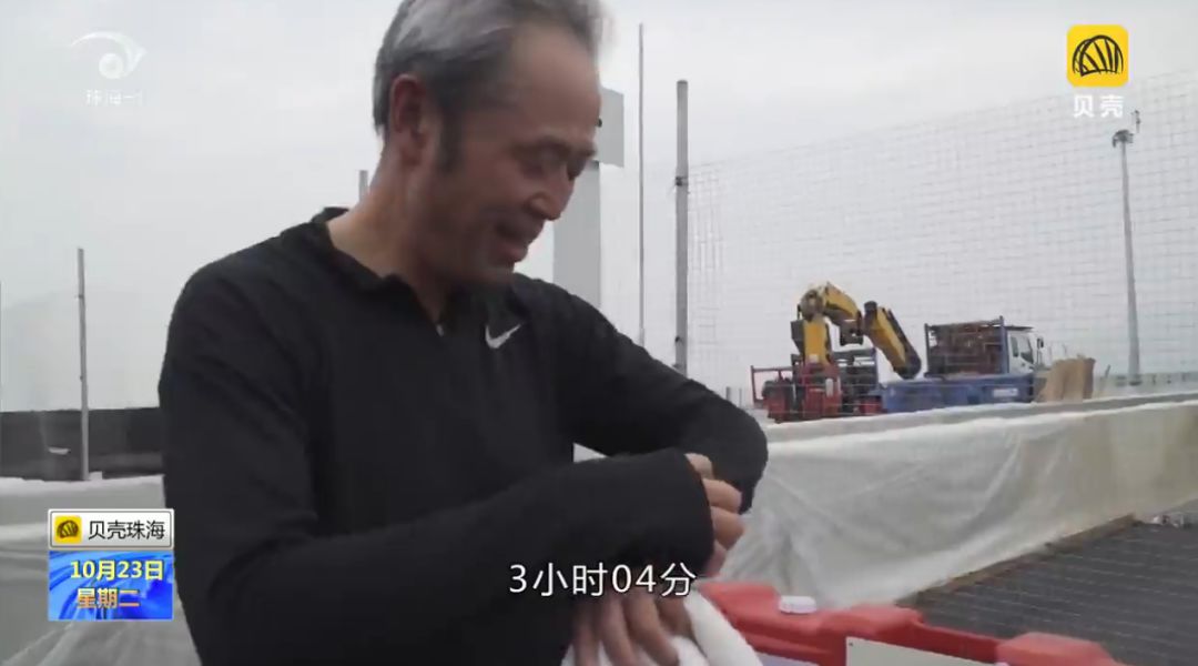 2017年的最后一天,港珠澳大桥主体全线亮灯,2018年1月1日凌晨4点半,这位61岁的工程师冒着严寒,在桥上点点灯光的照射下,用时3小时04分以奔跑了29.81公里的方式来纪念陪伴了9年的这座桥。