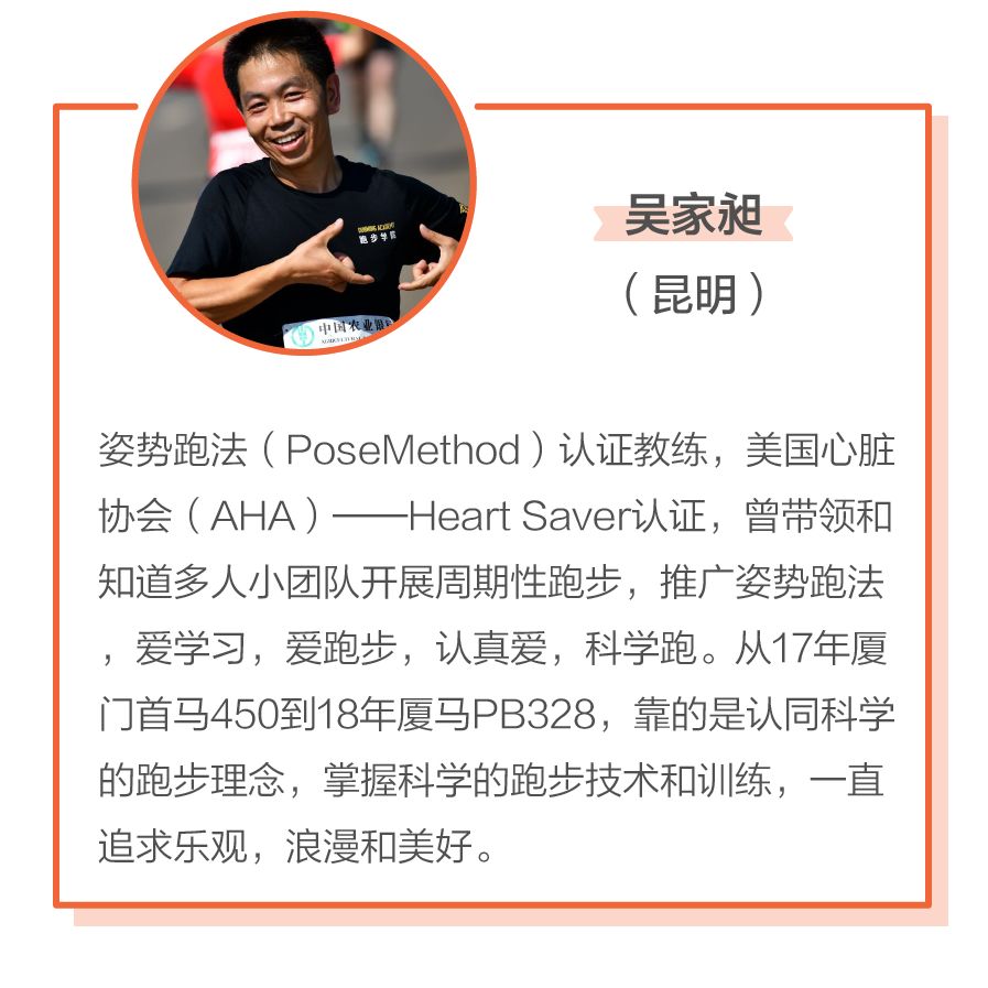 | 昆明 | 吴家昶 | 姿势跑法level 1认证教练、姿势跑法昆明区教练 |
