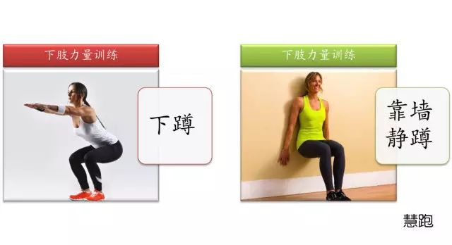跑步是一项全身运动,所以上肢、腰腹和下肢都需要进行一定的力量训练,下肢当然是跑步力量训练的重点,跑友最熟悉的两个下肢力训练动作就是下蹲和靠墙静蹲。